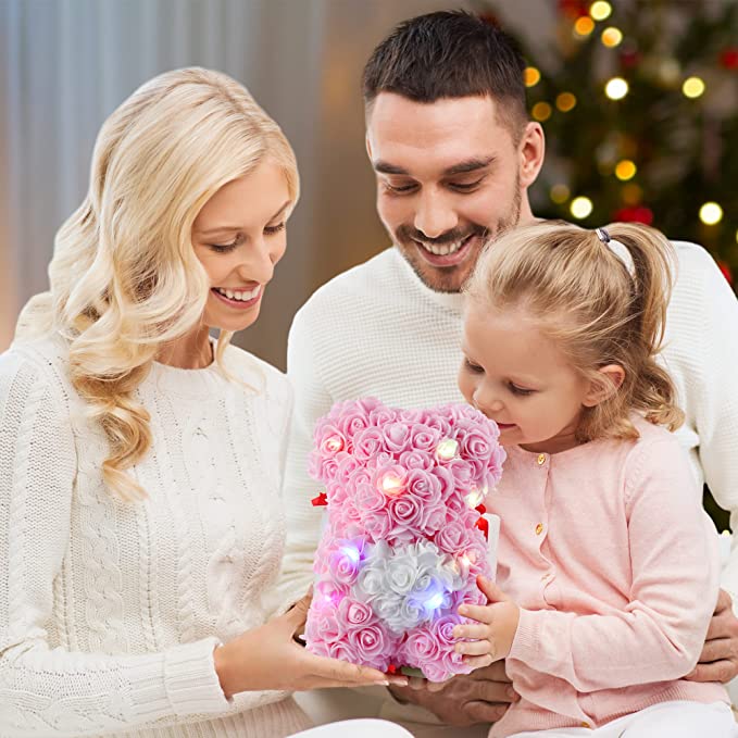 Pink Rose Bear with LED Lights [USA Shipping]